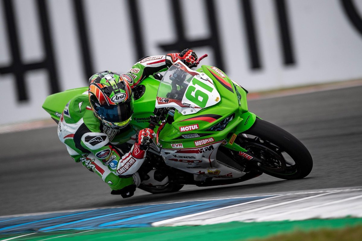 そこから追い上げ3番手まで浮上しましたが、高速コーナーで前のライダーがシフトミスで減速。スリップも効いていたため避けることが出来ず追突してしまいました。